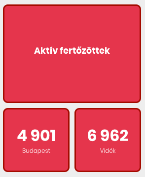 Az aktív fertőzöttek száma 11 863 fő. Az aktív fertőzöttek 41%-a, az elhunytak 58%-a, a gyógyultak 40%-a budapesti. 386 koronavírusos beteget ápolnak kórházban, közülük 30-an vannak lélegeztetőgépen.