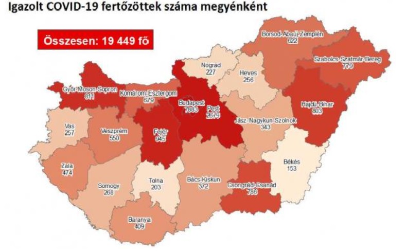 Regisztrált fertőzöttek száma, országosan: 19 499 (változás +633) fő