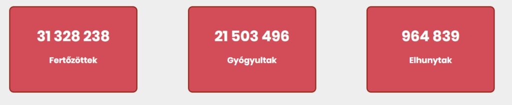 Már 31 245 797 ember fertőződött meg világszerte a koronavírus-járványban, a halálos áldozatok száma 963 693, a gyógyultaké pedig 21 394 593 a baltimore-i Johns Hopkins Egyetem keddi összesítése szerint.