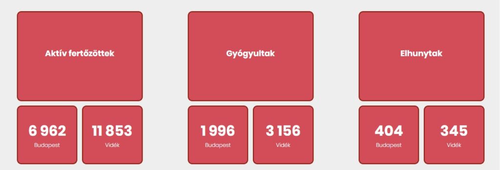 Az aktív fertőzöttek 37%-a, az elhunytak 54%-a, a gyógyultak 39%-a budapesti.