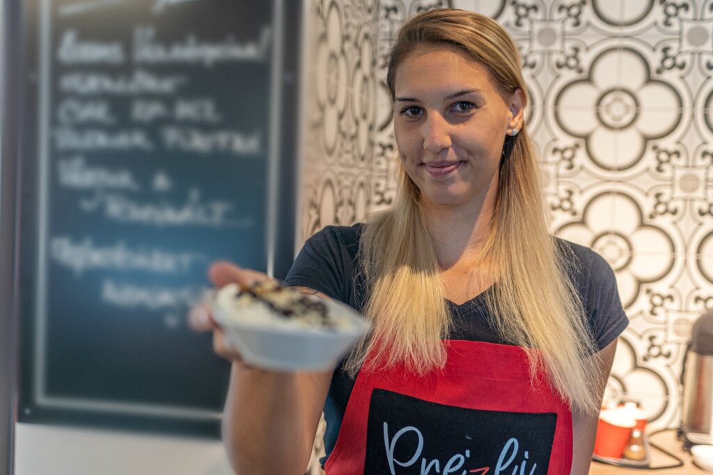 “Délben mindig friss étellel szolgáljuk ki a vendégeket, emiatt nagyon hamar népszerűvé vált a hely, és a csúcsidőben már nem tudtunk mindenkit leültetni. Fontos nálunk, hogy mindig friss alapanyagból dolgozzunk, ezért a kínálatot bővítve szezonálisan eltérő zöldségeket is panírozunk” – mesélte el a Szeged365.hu-nak Mayer Szilvia, a Széchenyi téri Prézli cégvezetője.
