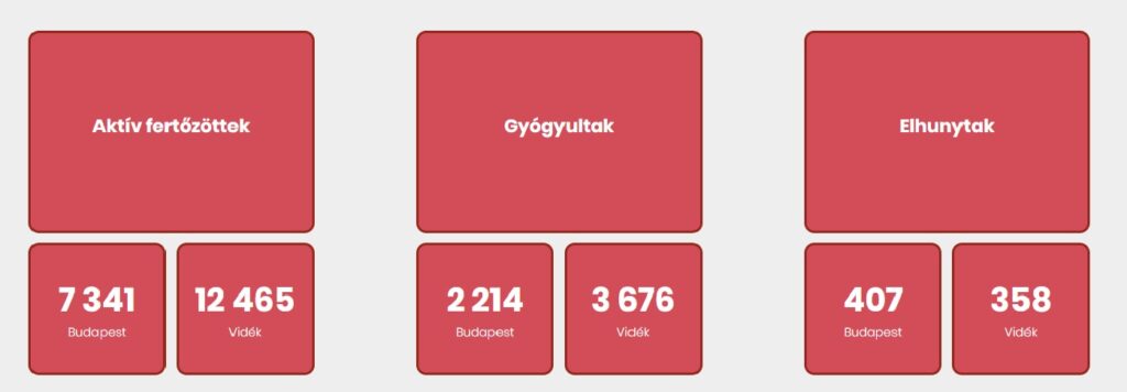 Az aktív fertőzöttek 37%-a, az elhunytak 53%-a, a gyógyultak 38%-a budapesti.