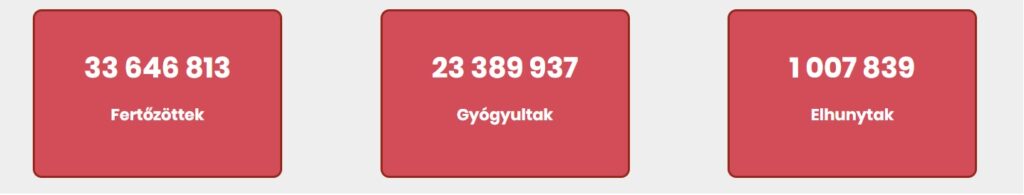 Már 33 560 877 ember fertőződött meg világszerte a koronavírus-járványban, a halálos áldozatok száma 1 066 564, a gyógyultaké pedig 23 297 593 a baltimore-i Johns Hopkins Egyetem szerdai összesítése szerint.