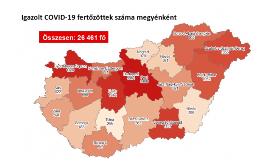 Regisztrált fertőzöttek száma, országosan: 26 461 (változás +894) fő