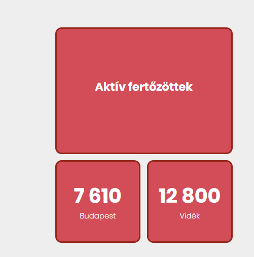 Az aktív fertőzöttek száma 20 410. Az aktív fertőzöttek 37%-a, az elhunytak 53%-a, a gyógyultak 37%-a budapesti.