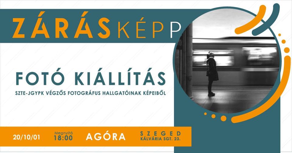 A Záráskép(P) nem más, mint az SZTE JGYPK végzett fotográfus hallgatóinak kiállítása. Az eseményen 19 tehetséges alkotó képeit lehet majd megcsodálni, egészen október 30-áig. A kiállítást dr. Döbör András dékán nyitja meg 18:00 órától a Szent-Györgyi Albert Agorában.