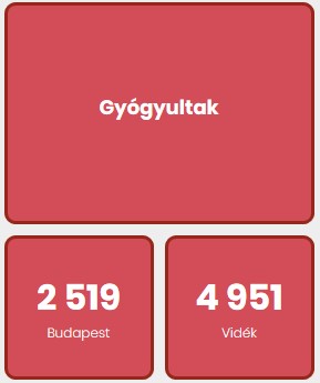Az aktív fertőzöttek 36 %-a, az elhunytak 51 %-a, a gyógyultak 34%-a budapesti.