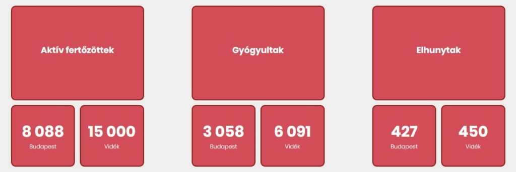 Az aktív fertőzöttek 35%-a, az elhunytak 49%-a, a gyógyultak 33%-a budapesti.