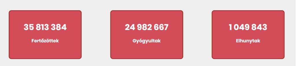 A világon 35 733 340 ember fertőződött meg a koronavírus-járványban, a halálos áldozatok száma 1 048 742, a gyógyultaké pedig 24 893 829 a baltimore-i Johns Hopkins Egyetem közép-európai idő szerint szerda reggeli adatai szerint.