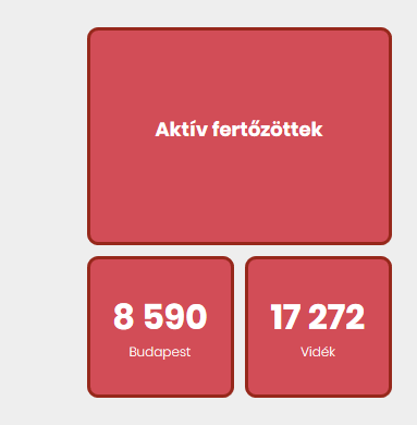 Az aktív fertőzöttek száma 25 862 fő. Az aktív fertőzöttek 33%-a, az elhunytak 46%-a, a gyógyultak 32%-a budapesti.