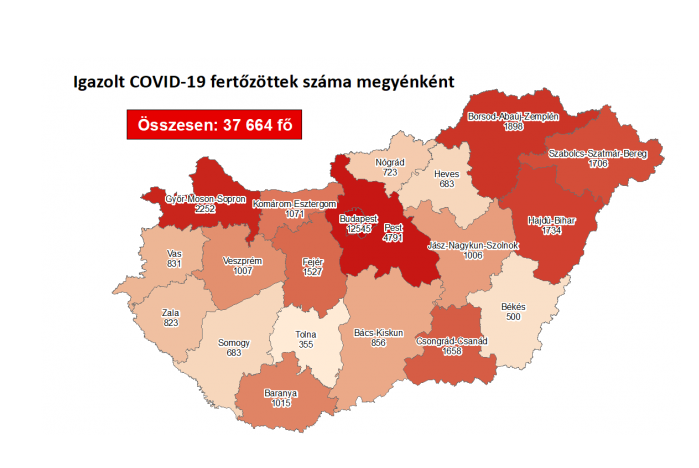 Regisztrált fertőzöttek száma, országosan: 37. 664 (változás +1068) fő