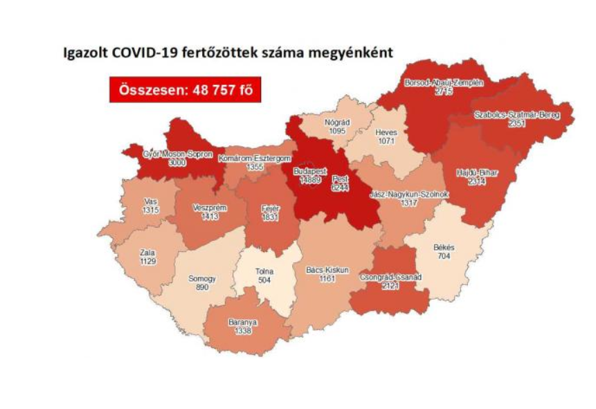 Regisztrált fertőzöttek száma, országosan: 48 757 (változás +989) fő