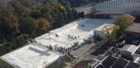 A nap fotója: őszi sátorállítás a városi sportuszodában