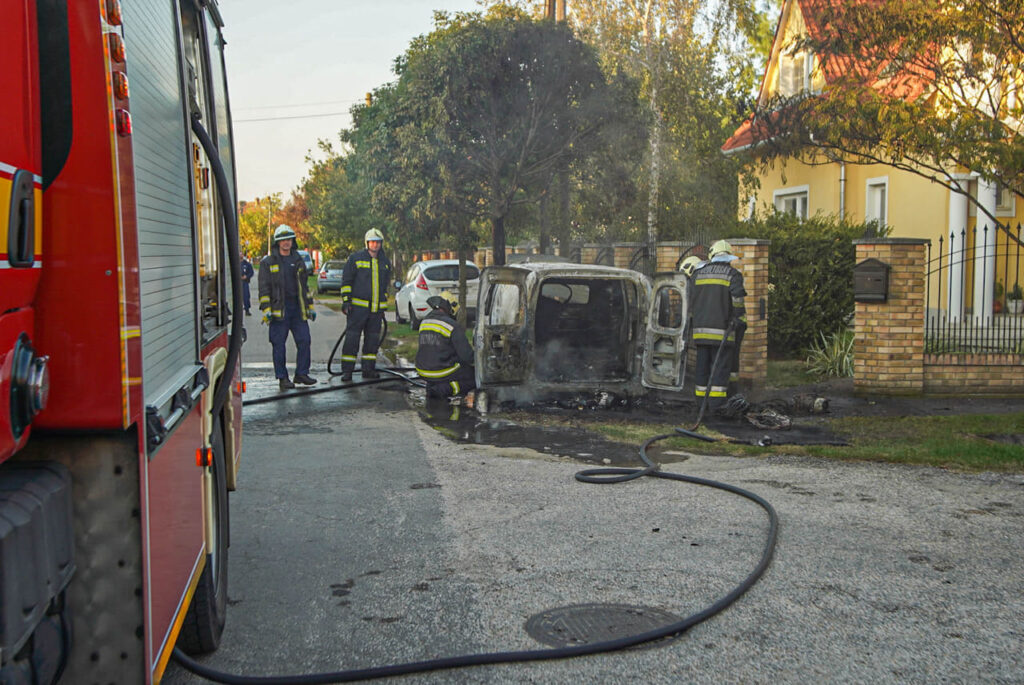 Kigyulladt egy autó Tápén, a Zágráb utcában