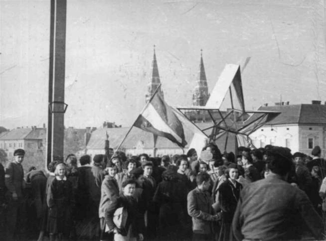 1956. november 6-án megérkeztek a városháza elé a szovjet páncélosok.