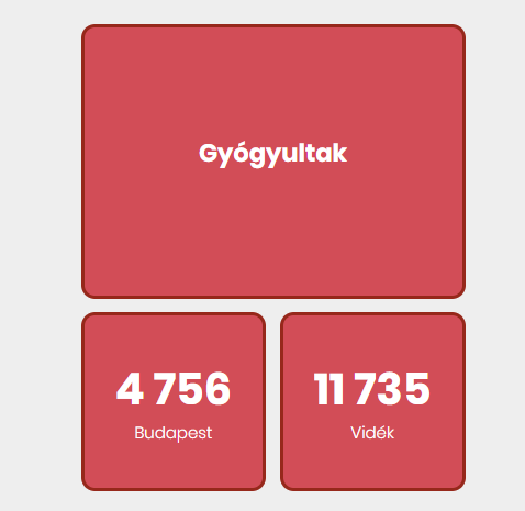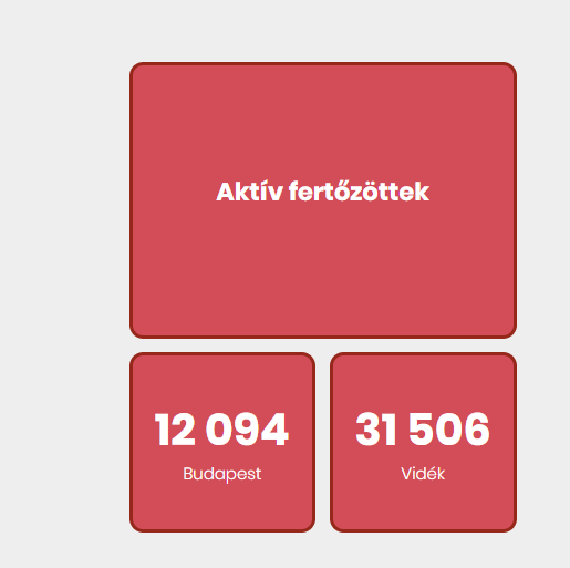 Az aktív fertőzöttek száma 43 600 fő. Az aktív fertőzöttek 28 %-a, az elhunytak 36%-a, a gyógyultak 29%-a budapesti.