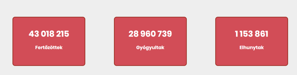 Világszerte már 42 990 032 ember fertőződött meg koronavírussal a hivatalos nyilvántartások szerint, a járvány halálos áldozatainak száma 1 153 625, a gyógyultaké pedig 28 960 204 a baltimore-i Johns Hopkins Egyetem közép-európai idő szerint hétfő reggeli adatai szerint.