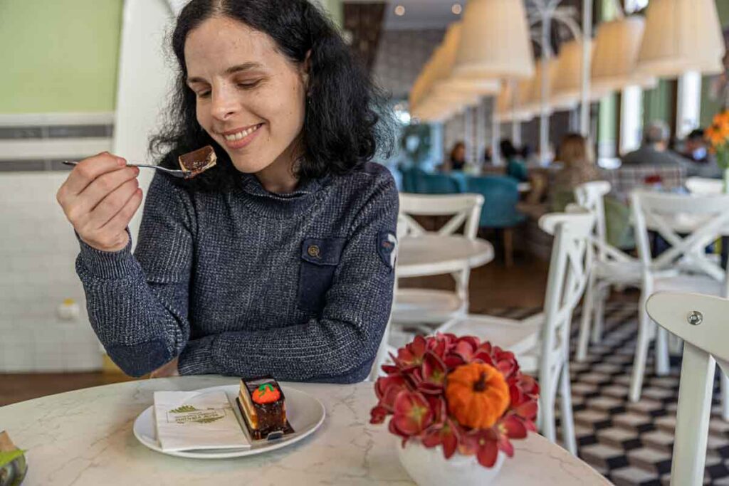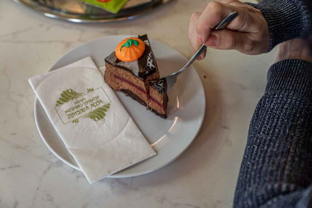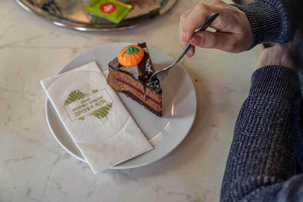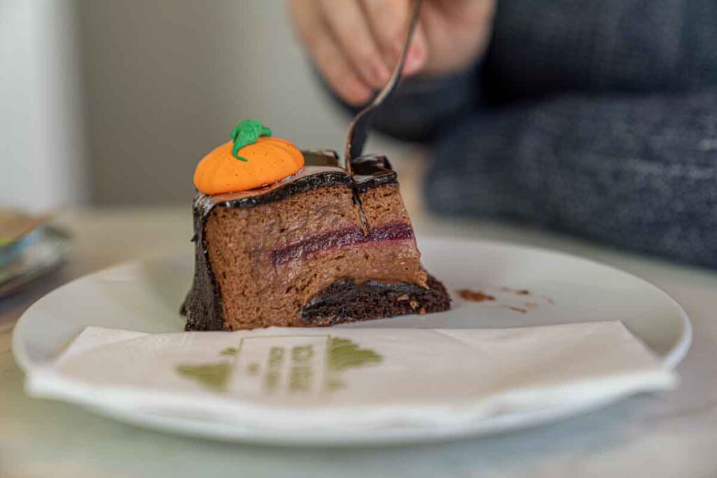 Ma végigkóstoltuk a cukrászda tökös édességeit, így biztosan garantálhatjuk, válaszd akár a sütőtök zselés csupa csokis brownie szeletet, a halloweeni csokis málnás tortát, vagy kóstolj bele a sütőtökös macaronba, egy kérdésed marad csupán utána, hogy hol van a következő szelet. És, ha az édesség kóstolásban megszomjaztál, öblítsd le a mennyei falatokat egy ünnepi sütőtökös barackos turmixszal, vagy az igazi Halloween hangulat kedvéért kérd kávédat szellem díszítéssel.