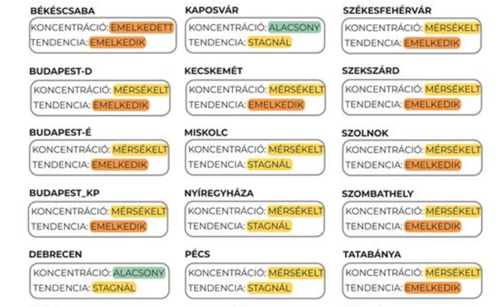 A 44. heti adatok alapján a koronavírus szennyvízben mért koncentrációja emelkedő tendenciát mutat az NNK által vizsgált települések többségében, így a fővárosban és az agglomerációban is, Szegeden azonban még mindig stagnál.