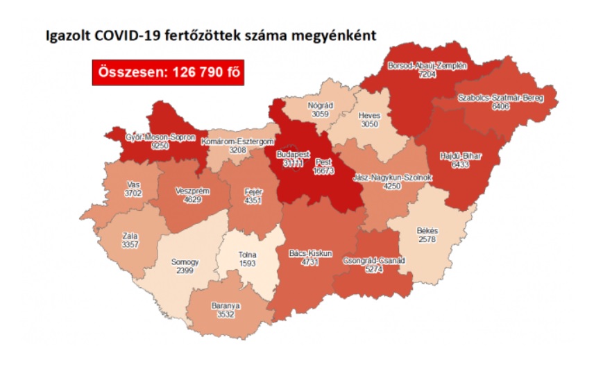 Regisztrált fertőzöttek száma, országosan: 126 790 (változás +3927) fő