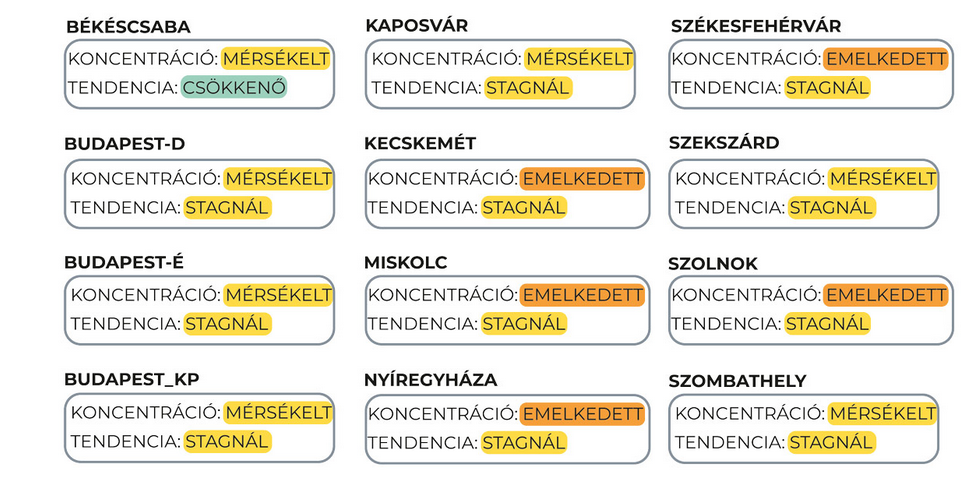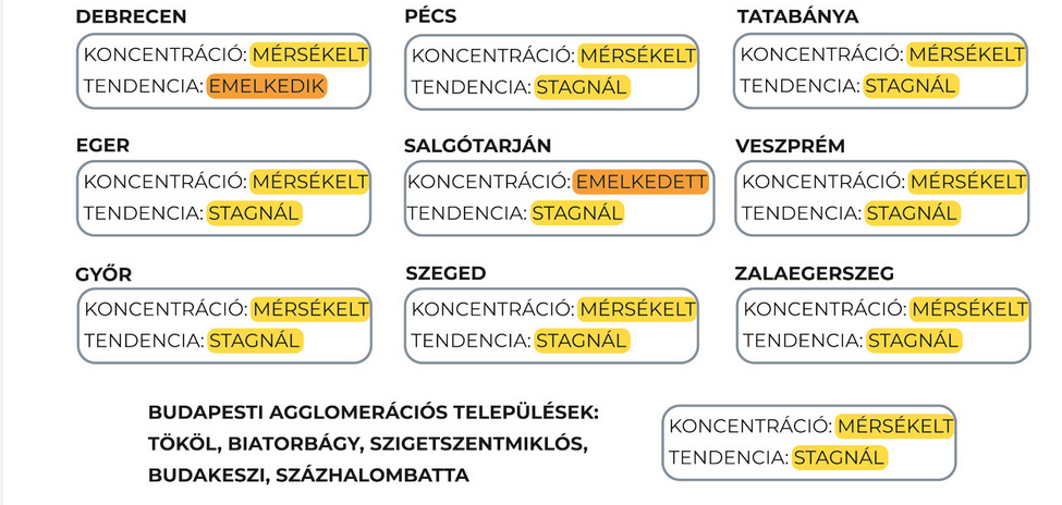 Még mindig stagnál Szegeden a koronavírus szennyvízben mért koncentrációja. A 46. heti adatok alapján azonban Debrecenben, Kecskeméten, Miskolcon, Nyíregyházán, Salgótarjánban, Székesfehérváron és Szolnokon is emelkedett. A változás tendenciája azonban az NNK szerint többnyire stagnáló, még a mérsékelt koncentrációt mutató településeken is.