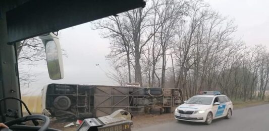 Teljes útzár: felborult egy busz Kistelek és Kömpöc között