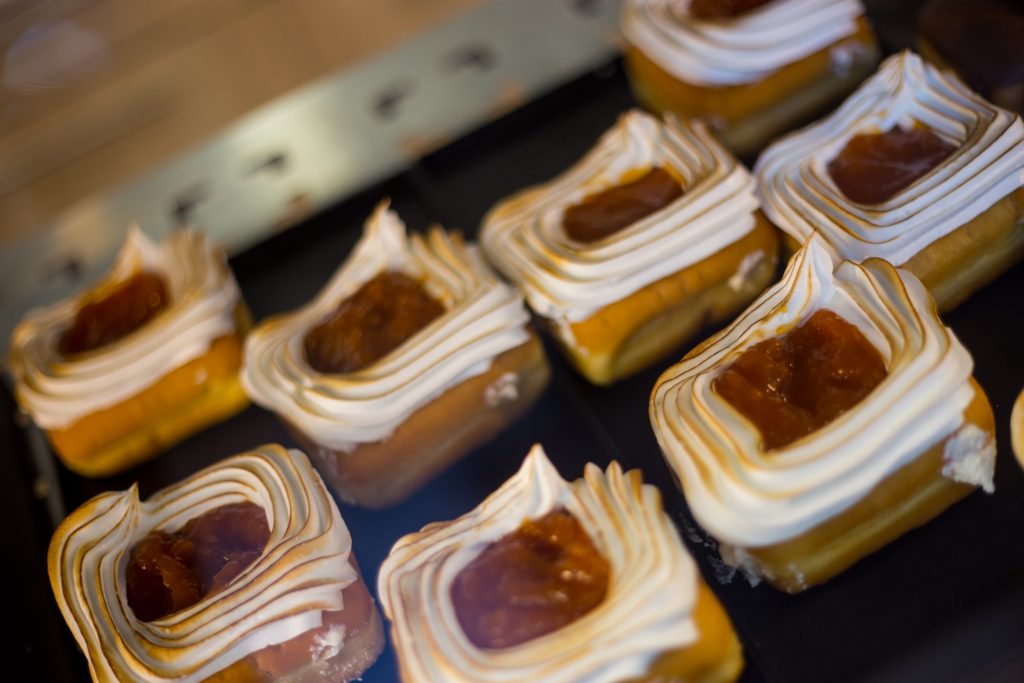 Az egyszerre mókás külsejű, és figyelemfelkeltő Charity fánk ráadásul finom is: a kurkumás csokoládés díszítés, marcipán maszk adják a megjelenés alapját, de nem árt tudnod, hogy a puha fánktészta csokoládékrémet is rejt magában. Ha egy kis bűnös élvezetre vágysz, akkor neked is meg kell kóstolnod!