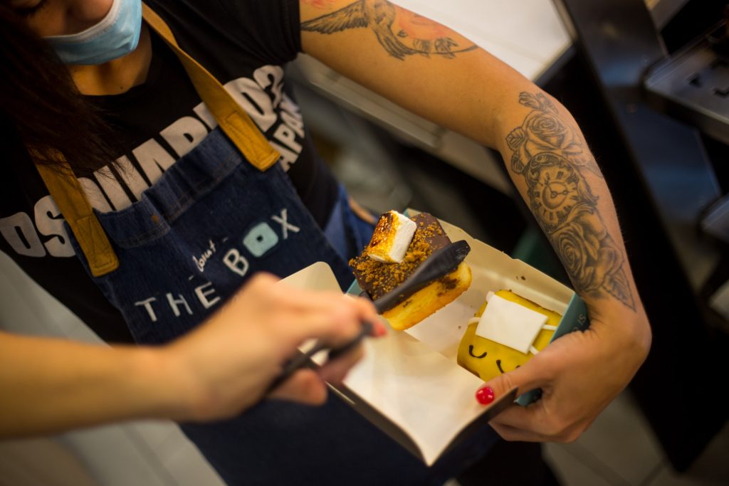 Ha van hely, aminek szinte alig változtatta meg az életét a koronavírussal járó kijárási korlátozás, az a The Box Donut. A szögletes fánkcsodákat eddig is papírdobozban vihettük magunkkal vásárlás után, most is az elviteles kiszolgálás a Mars téri Box Donut fő profilja. Bár a nyitvatartási korlát nem vonatkozik az rá, de természetesen azért az új kihívásokra is reagálnia kellett a szögletes fánkokkal hódító üzletnek, így a NetPincéren és a Wolton keresztül már házhoz is rendelhetjük a kedvenc ízeinket.