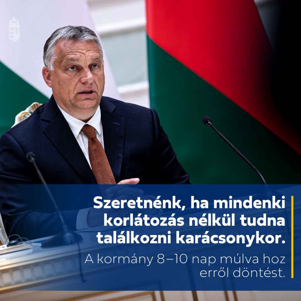 “Szeretnénk, ha mindenki korlátozás nélkül tudna találkozni karácsonykor. A kormány 8–10 nap múlva hoz erről döntést” – írta közösségi média oldalán Magyarország kormánya.