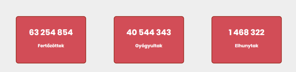 A világon 63 229 355 ember fertőződött meg a koronavírus-járványban, a halálos áldozatok száma 1 467 673, a gyógyultaké pedig 40 523 031 a baltimore-i Johns Hopkins Egyetem közép-európai idő szerint kedd reggeli adatai szerint.