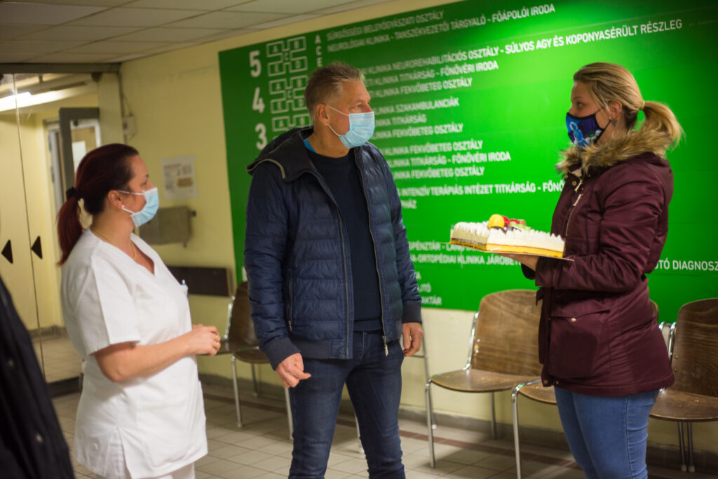 Nagyon megörültem amikor a Reök Kézműves- és a Delimo Cukrászda csatlakozott: kézműves tortákkal szerettek volna kedveskedni a születésnapos hősöknek! Nagyon fontos, egyben felemelő érzés, hogy az orvosoknak, ápolóknak, gondozóknak, beteghordóknak…stb a születésnapjukon tudunk egy kis mosolyt, kedvességet adni, miközben erőn felül teljesítenek. Ma is sikerült ezt elérni, és amikor Barbara megtudta, hogy az Ő nevezettje nyert, nagyon megörült! Tegnap ünnepelte születésnapját kollégájuk Balázs, így Barbara és a születésnapos apukája (aki ugyancsak orvos) nagy boldogságban vette át a Reök Kézműves Cukrászda tortáját. Innen is nagyon boldog születésnapot kívánunk Balázsnak!