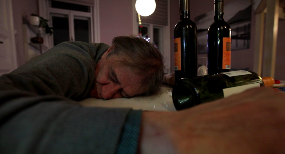 (3.) Miután megvolt a zúzás, leissza magát, Mucsi style, szigorúan (nem épp) egy pohárkával: