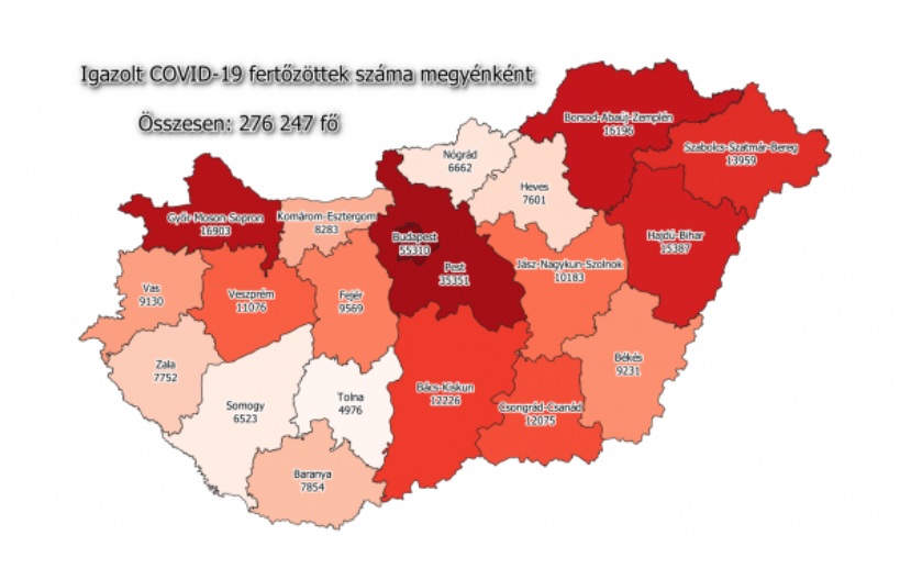 Az elmúlt 24 órában 3470 új esetet regisztráltak, ezzel 283 870 főre nőtt a hazánkban beazonosított fertőzöttek száma. Csongrád-Csanád megyében március óta immár 12 468 főt tartanak számon, amelyből 206 személynél az elmúlt egy napban jegyezték fel a fertőzést.