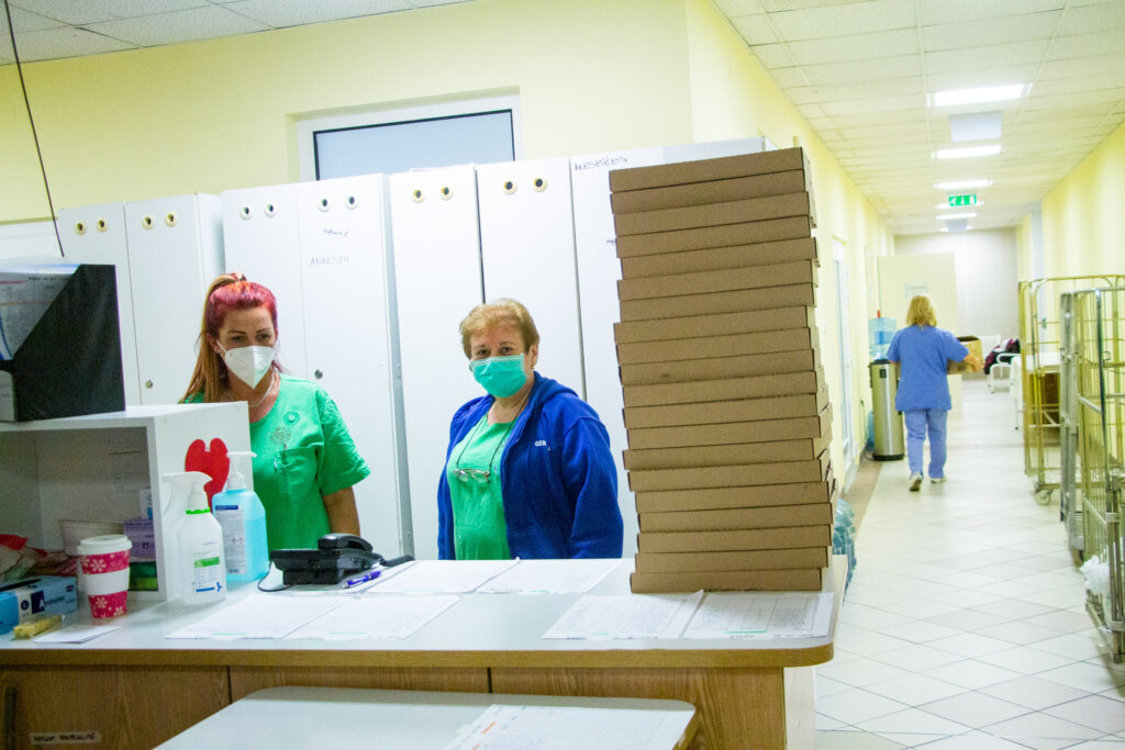 Horváth Norbi, a Garden Bisztró üzletvezetője akkora lendülettel ugrott ki a kezében tornyosuló 20 db kézműves pizzával az étteremből, hogy majdnem hátraesett Török Kornél kollégánk. Nem véletlenül: a szegedi II-es kórház Covid osztályára nem lehet “csak úgy” bemenni, szigorú szabályok és pontos időzítés kell hozzá. A srácokkal pontban kettőre értünk oda az intézménybe, ahol fáradt, de mosolygós, hősies szegediek vártak bennünket: