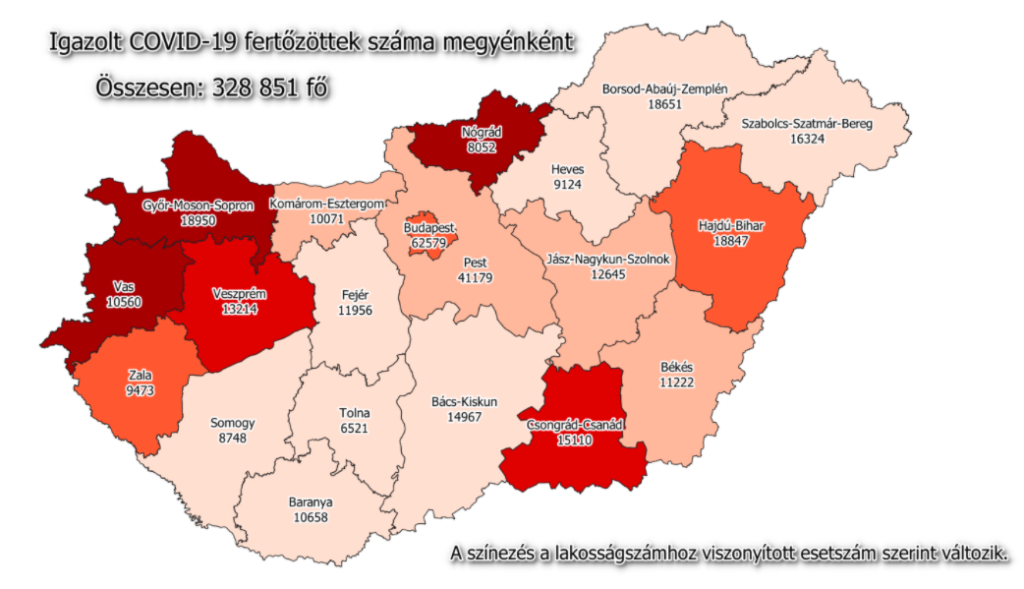856 újabb magyar állampolgárnál mutatták ki az új koronavírus-fertőzést, ezzel 328 851 főre nőtt a hazánkban beazonosított fertőzöttek száma. Elhunyt 93 többségében idős, krónikus beteg, így az elhunytak száma 9977 főre emelkedett. A gyógyultak száma jelenleg 174 070 fő, az aktív fertőzöttek száma 144 804 főre csökkent. Szegeden és környékén 54 új esetet regisztráltak.