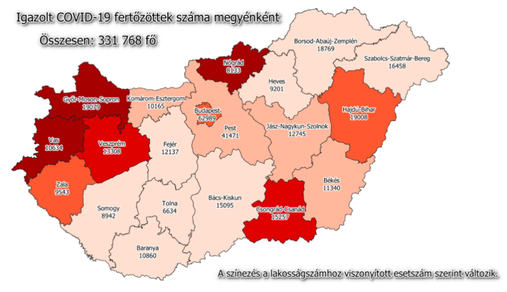 Eddig regisztrált fertőzöttek száma, országosan: 331 768 fő