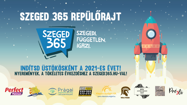 • Mi adunk sok-sok nyereményt, amelyek segítségével igazi repülőrajtként indul majd a 2021-es éved, vitaminokat, taxi-utalványokat, gasztro-utalványokat és egy Szeged 365 bögrét, hogy legyen miből kortyolgatnod a reggeli kávéd, miközben Rókus kolléga Napi Pakkjait olvasod…