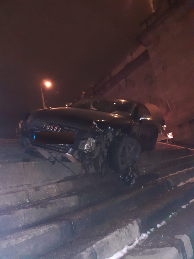 Baleset a rakparton, a lépcsőkön landolt egy Audi A7 (frissítve)