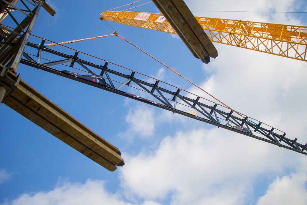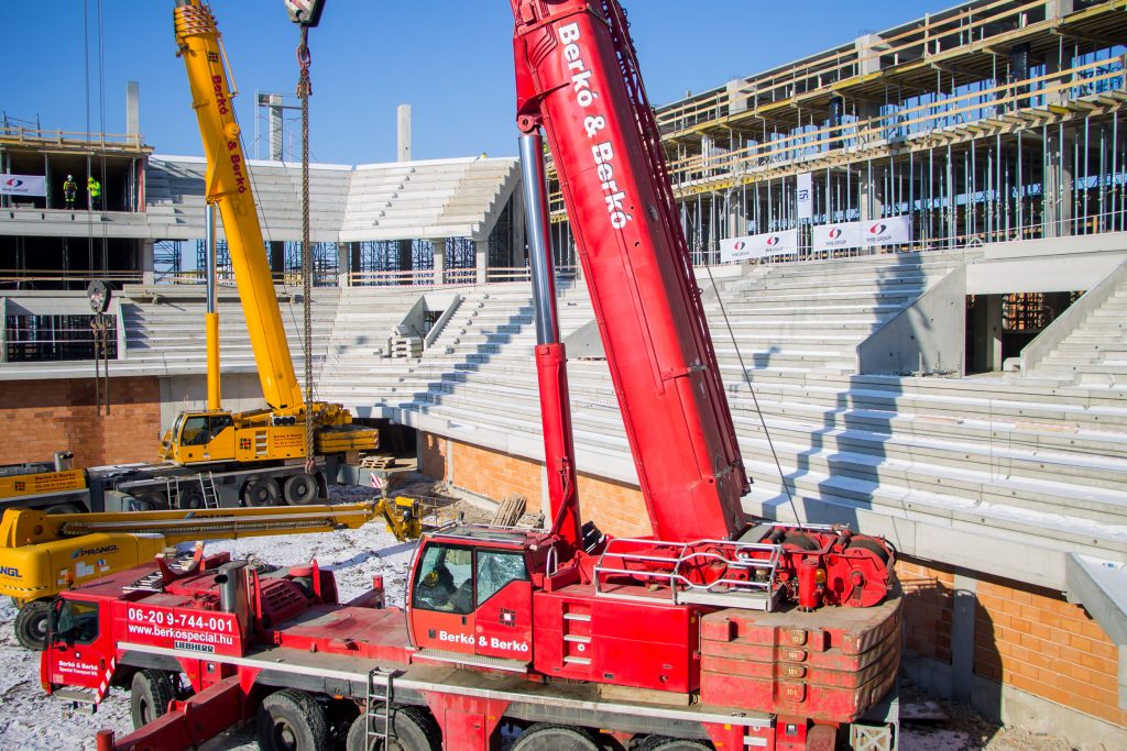 Történelmi, egyben grandiózus pillanat részesei lehettünk hétfőn: beemelték az építmény legmagasabb pontján lévő acélrácsos tartószerkezeti elemet, avagy az áthidaló gerendát. A feladathoz egy akkora darut kellett Szegedre szállítani, amely nemcsak Magyarországon, de egész Európában ritkaságnak számít.