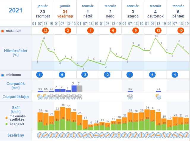 Az Országos Meteorológiai Szolgálat előrejelzése alapján vasárnapra már nem jut a szombati jó időből Szegedre. Egy mediterrán ciklonnak köszönhetően fagypontig hűl az éjszaka a levegő és nappal is csupán 2 fokig kúszik fel a hőmérő higanyszála. Esőből és havasesőből, de akár hóból is kaphatunk bőven, így a napsütést elfelejthetjük a hét utolsó napján Szegeden.