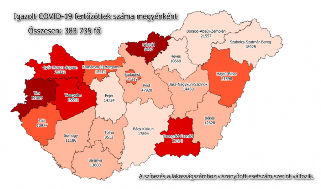 Eddig regisztrált fertőzöttek száma, országosan: 383 735 fő
