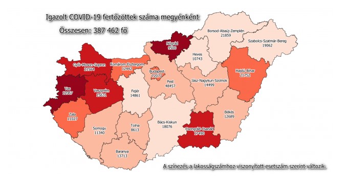 Eddig regisztrált fertőzöttek száma, országosan: 387 462 fő