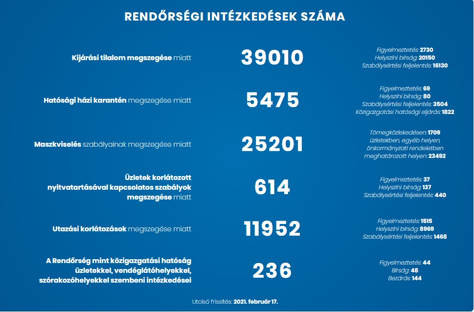 Tájékoztatása szerint eddig 348 927 embert oltottak be, közülük 134 824-en már a második védőoltást is megkapták. Azt mondta, “a járvány nem enged a szorításból”, az elmúlt 24 órában 77 250-re nőtt az aktív fertőzöttek, 4014-re a kórházban ápoltak és 321-re a lélegeztetőgépen lévők száma. Emellett Szegeden, Székesfehérváron, Szekszárdon, Szolnokon, Tatabányán, Veszprémben, Zalaegerszegen és öt Budapest környéki településen nőtt a szennyvízben a vírus örökítőanyagának mennyisége. A vírusmutánsokkal is hasonló a probléma. Ma 193 főnél mutatták ki az angol vírusvariánst, a fertőzöttek átlagéletkora 51. A legfiatalabb fertőzött 6 éves, a legidősebb pedig 94 éves.