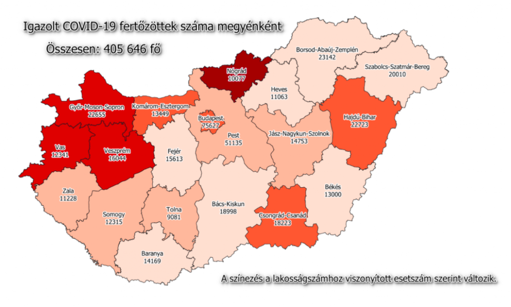 Eddig regisztrált fertőzöttek száma, országosan: 405 646 fő