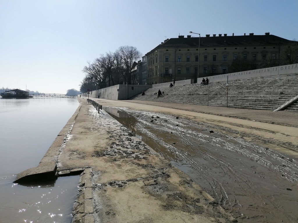 Makrai László elmondta, az SZKHT abban a percben elkezdi a gépi takarítást, amint az ATIVIZIG értesíti őket, hogy mehet a munka. Az SZKHT úgy tervez, hogy erre holnap kerülhet sor. Ha a víz leapadt, teljesen visszakúszott a medrébe, onnantól számítva még kell pár nap, hogy kiszáradhasson a rakpart, ezt követően lehet újra megnyitni azt a forgalom előtt. Ergo, pár nap még biztosan kell a Huszár Mátyás rakpart megnyitásához.