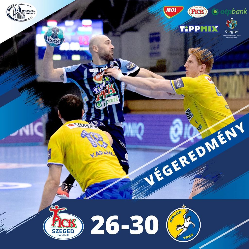 A férfi kézi Bajnokok Ligájában a Mol-Pick Szeged 30–26-ra kapott ki a Kielcétől. Juan Carlos Pastor alakulata három Bajnokok Ligája győzelem után lépett pályára az újszegedi sportcsarnokban, ahol egy szoros, bombagólokkal tarkított meccsen mérkőzött meg a felpaprikázott lengyelekkel. A hajrában megtörtént pár perces szegedi mini-összeomlást annak rendje és módja szerint kihasználta a vendég, a végét négy gól különbséggel zárták a csapatok.