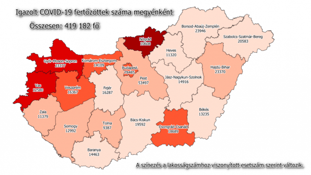 Eddig regisztrált fertőzöttek száma, országosan:  419 182 fő