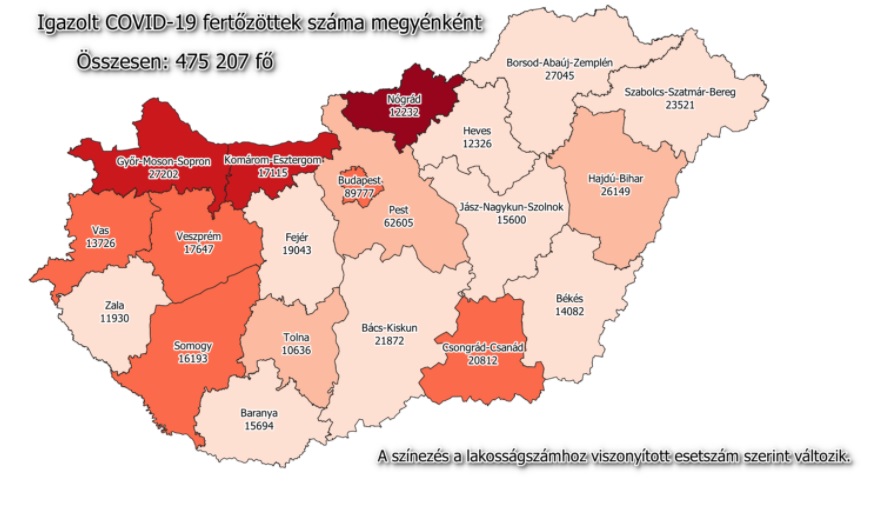 Eddig regisztrált fertőzöttek száma, országosan: 475 207 fő