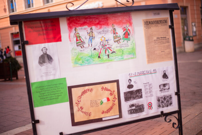 Utcai tárlatot rendeztek Szeged belvárosában a Szent-Györgyi Albert Agóra a Gábor Dénes Szakgimnázium pedagógia szakos hallgatóinak segítségével.