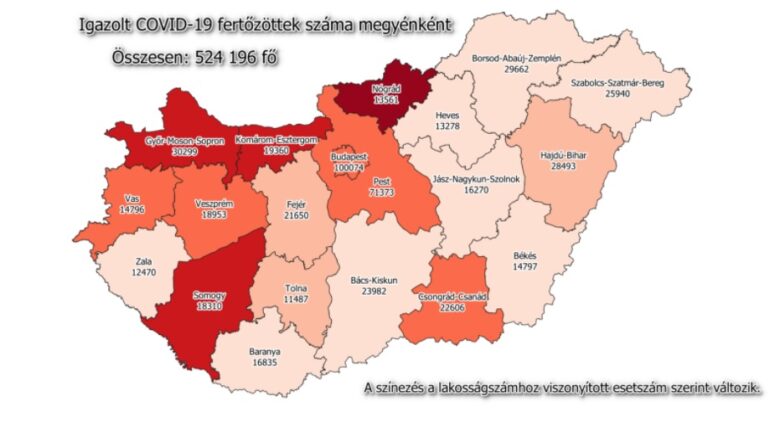 Eddig regisztrált fertőzöttek száma, országosan: 524 196 fő